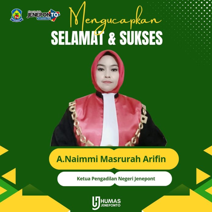 Ibu Andi Naimmi menggantikan Ibu Endah Sri Andriyati, S.H., M.H., sebagai Ketua Pengadilan Negeri Jeneponto. Dengan kepercayaan dan amanah baru ini, beliau diharapkan mampu memperkuat pelayanan hukum di wilayah Jeneponto. Dikenal dengan pengalaman dan dedikasi yang tinggi, Andi Naimmi diharapkan membawa perubahan positif dan memberikan pelayanan hukum yang lebih baik dan berkeadilan bagi masyarakat.