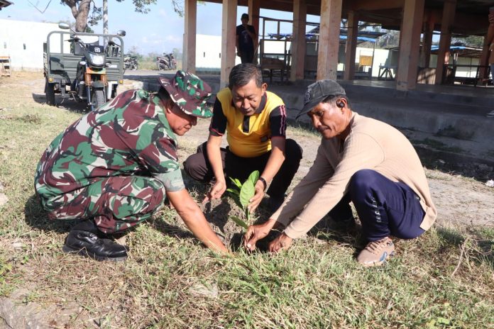 “Hari ini Kita melaksanakan Karya Bakti Penanaman bibit Pohon Buah jenis Nangka, Pepaya, dan Mahoni, dan dilanjutkan pembersihan sampah dilingkungan Pasar dalam rangka menyambut HUT ke 79 TNI Tahun 2024.” Kata Lettu Inf Marzuki.