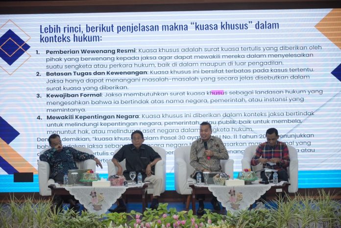 Makassar, Berita-Kita | Kepala Kejaksaan Tinggi Sulawesi Selatan, Agus Salim membuka kegiatan Focus Group Discussion (FGD) dengan tema “Quo Vadis Eksistensi Jaksa Pengacara Negara” di Aula Lantai 8 Kejati Sulsel, Rabu (09/10/2024).