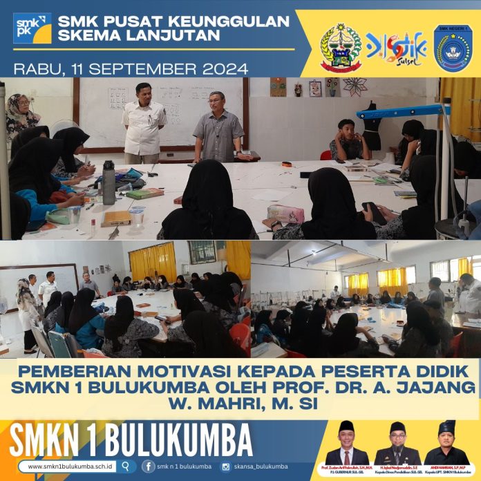 Bulukumba, Berita-Kita | Sekolah Menengah Atas Kejuruan Negeri 1 Bulukumba (SMKN 1 Bulukumba) mendapat kehormatan besar dengan kehadiran Guru Besar Universitas Pendidikan Indonesia (UPI) Bandung, Jawa Barat,(Prof. Dr. A.Jajang W.Mahri, MSi).