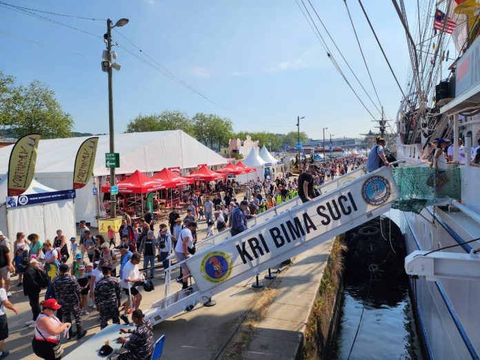 Prancis, Berita-Kita | Berhasil mencuri perhatian pengujung lokal maupun mancanegara, Kapal Layar Tiang Tinggi TNI AL KRI Bima Suci menjadi Primadona pada event L’Armada Rouen 2023 di Port of Maritime, Rouen, Prancis awal pekan ini. Kehadiran KRI Bima Suci dalam event berskala internasional tersebut selalu dibanjiri pengunjung setiap harinya. (19/06/2023).