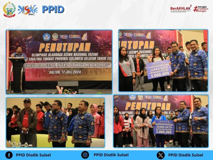 Makassar, Berita-Kita | Dinas Pendidikan (Disdik) Provinsi Sulawesi Selatan telah melaksanakan Olimpiade Olahraga Siswa Nasional (O2SN) Tingkat Prov Sulsel yang digelar selama 3 hari (15-17/07/2024).