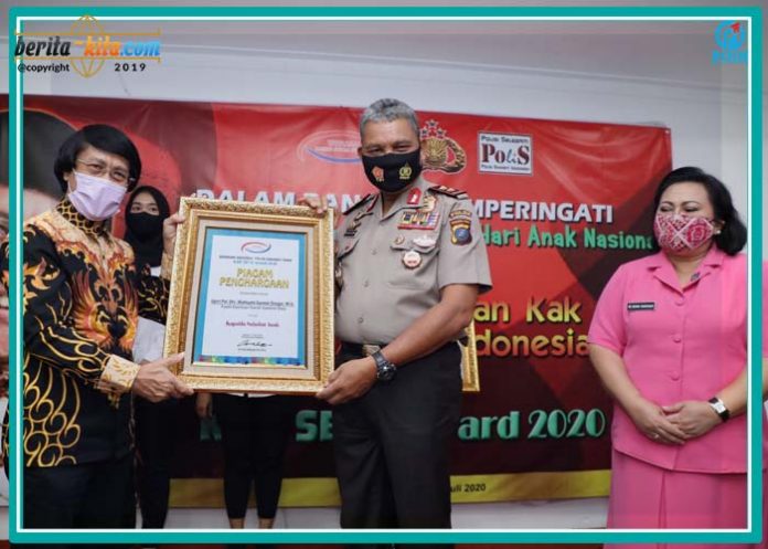 Kapolda Sumut dan Ketua Bhayangkari Daerah Sumut menerima penghargaan tersebut yang diserahkan langsung oleh Dr Seto Mulyadi Psi MSi bertempat di Kak Seto School, Jalan Raya Perigi Lama, Kecamatan PD. Aren, Kota Tangerang Selatan, Senin (27/07/2020).