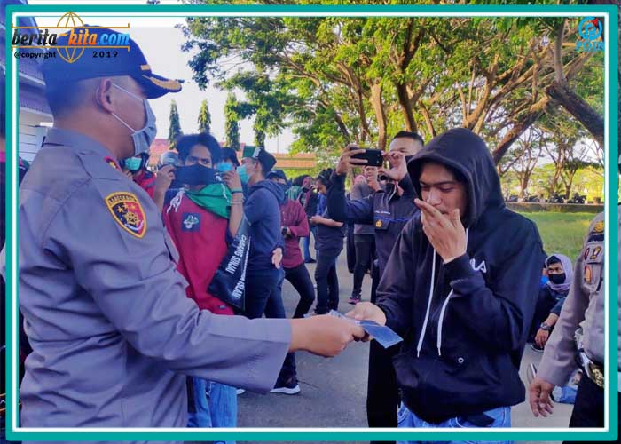 Kapolres Sinjai Pimpin Langsung Pengamanan Aksi Unras Tolak UU Omnibuslaw & Membagi Masker
