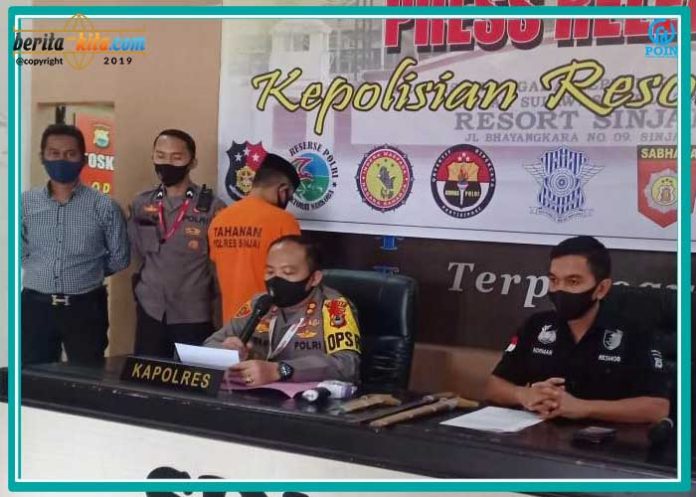 Sinjai, Berita-Kita | Pada hari Selasa tanggal 14 Juli 2020 pukul 13.30 wita, bertempat diruang lobby parama satwika Mapolres Sinjai, Kapolres Sinjai Ajun Komisaris Besar Polisi (Akbp) Iwan Irmawan, S.Ik.,M.Si didampingi Kasat Reskrim Polres Sinjai Akp Noorman Haryanto H, S.Ik merelease secara live streaming dugaan Tindak Pidana Pengrusakan Posko Covid-19 dan tindak pidana lainnya yang diduga dilakukan oleh pelaku berinisial Lelaki HN, (30) tahun, Pekerjaan swasta, alamat Desa Saohiring Kecamatan Sinjai Tengah Kabupaten Sinjai.