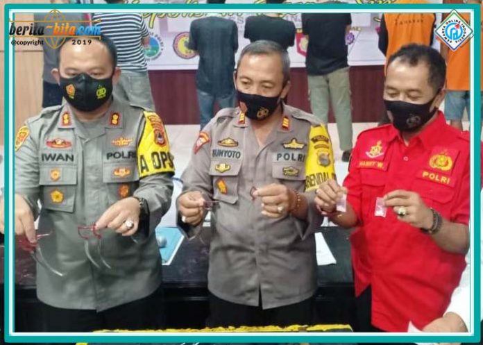Sinjai, Berita-Kita | Bertempat diruang Aula Parama Satwika Mapolres Sinjai, Kapolres Sinjai Ajun Komisaris Besar Polisi (Akbp) Iwan Irmawan, S.Ik.,M.Si didampingi Kabag Ops Akp Sunyoto, S.Sos, Kasat Reskrim Akp Noorman Haryanto H, S.Ik, Kasubbag Humas Akp Fatahuddin, B, SH, Kasat Narkoba Iptu Hanny William, KBO Reskrim Ipda Yantar, SH dan KBO Intelkam Ipda Alfian Mahajir, SH merelease secara live streaming penangkapan Judi Sabung Ayam, pada hari Sabtu sore (21/11), didusun Pao-Pao, Desa Palangka, Kec. Sinjai Selatan, Kab. Sinjai, Senin (23/11/2020).