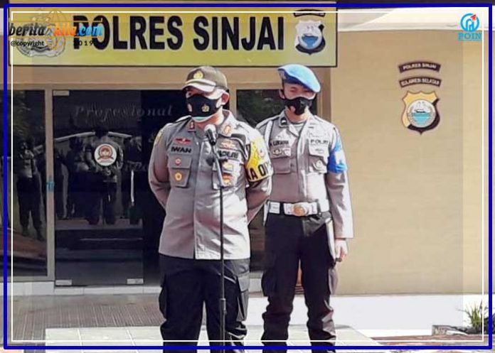Sinjai, Berita-Kita | Bertempat dihalaman Mapolres Sinjai, Kepala Kepolisian Resor Sinjai Ajun Komisaris Besar Polisi (Akbp) Iwan Irmawan, S.Ik.M.Si pimpin apel jam pimpinan sampaikan beberapa penekanan terkait persiapan pengamanan aksi Unjuk Rasa Tolak Rancangan Undang Undang Cipta Tenaga Kerja, Senin pagi (12/10/2020).
