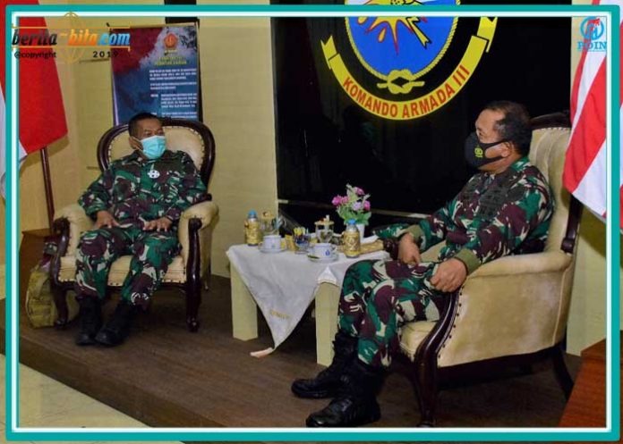 Papua Barat, Berita-Kita | Kepala Staf Komando Armada III, Laksamana Pertama TNI Maman Firmansyah menerima secara resmi kedatangan Tim Pengawasan dan Pemeriksaan (Wasrik) Inspektorat Jenderal TNI di VIP Room Mako Koarmada III Jl. Bubara No. 1 Kel. Klaligi, Distrik Sorong Manoi, Kota Sorong, Papua Barat, Senin (12/10/2020).