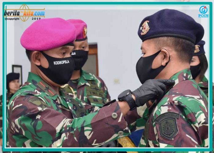 Surabaya, Berita-Kita | Komando Pendidikan Operasi Laut (Kodikopsla) Komando Pembinaan Doktrin Pendidikan dan Latihan TNI Angkatan Laut (Kodiklatal) memiliki Nakhoda baru setelah dilaksanakan serah terima jabatan Komandan Kodikopsla dari Komandan Kodiklatal yang diwakili Wadan Kodiklatal Brigjen TNI (Mar) Lukman ST., M.Si (Han) kepada Laksma TNI Agus Hariadi. Adapun sertijab tersebut dilaksanakan di Gedung Bima Sakti Kesatrian Kodikopsla Ujung Surabaya, Rabu, (19/08/2020).
