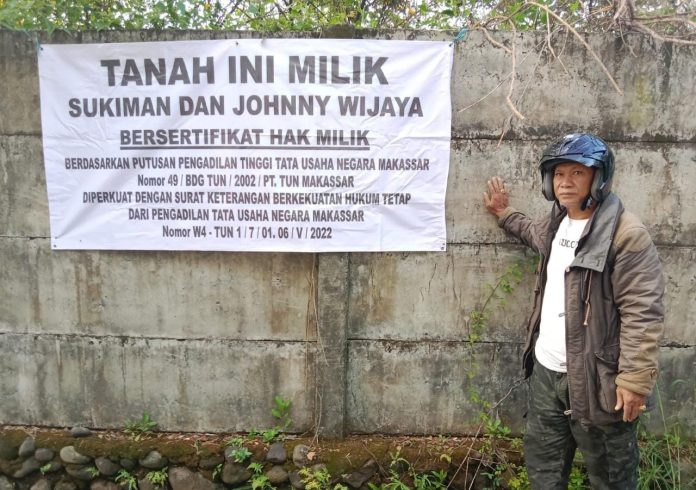 Makassar, Berita-Kita | Pengadilan Tata Usaha Negara Makassar mengabulkan permohonan penggugat Sukiman dan Johnny Wijaya atas lahan yang berada di Jl Ir. Soetami samping Tol. Sukiman Cs memenangkan gugatan di PTUN Makassar melawan Jeffry Wiseng NG berdasarkan kepemilikan SHM atas dasar rincik Persil 20 SII Kohir 153 CI.