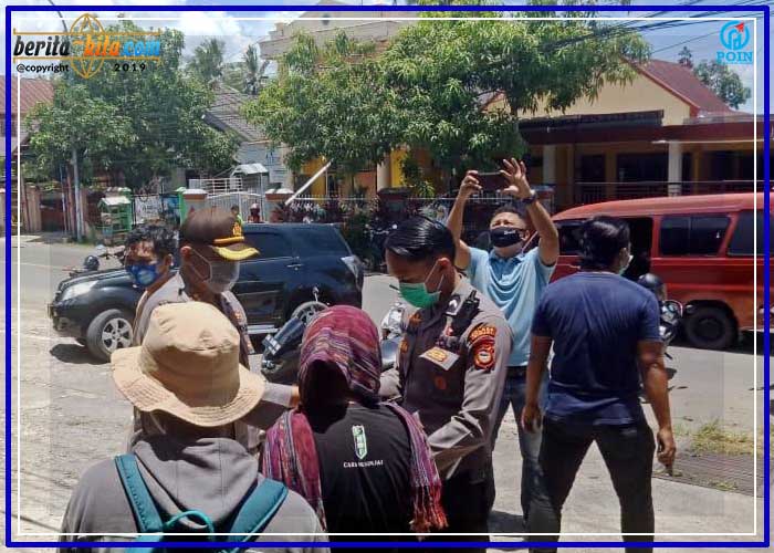 Sinjai, Berita-Kita | Kepala Kepolisian Resor Sinjai Ajun Komisaris Besar Polisi (Akbp) Iwan Irmawan, S.Ik.M.Si saat pimpin pengamanan sekaligus membagikan masker kepada peserta aksi unjuk rasa Himpunan Mahasiswa Islam (HMI) Cabang Sinjai di kantor Mandala Finance, jln. AP Pettarani, Kelurahan Bongki, Kecamatan Sinjai Utara, Kabupaten Sinjai, Senin (12/10/2020).