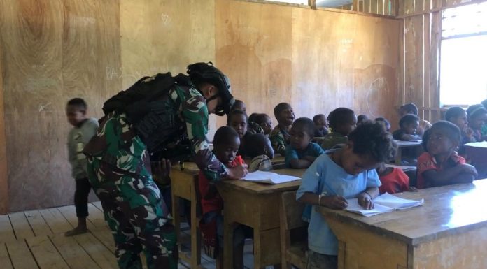 Peduli Pendidikan, Satgas Yonif 203/AK Bantu Tenaga Pendidik di SDI Brume, Lanny Jaya