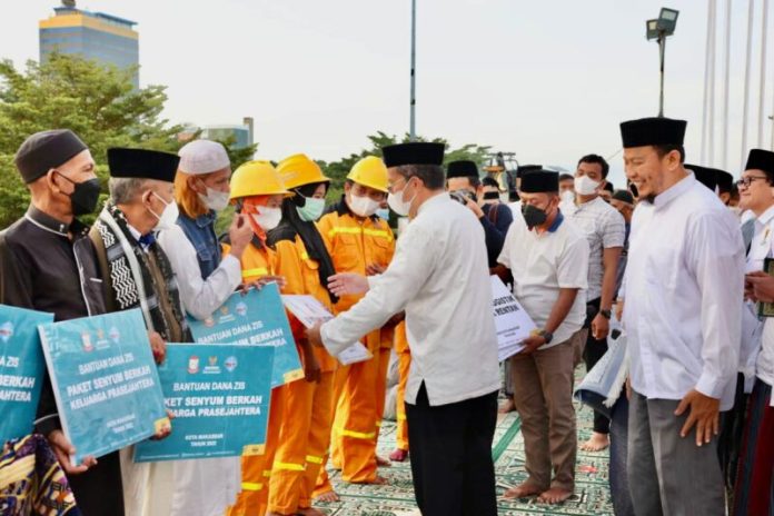 Dalam kesempatan itu, Danny menyerahkan langsung zakat para ASN Kota Makassar ke Badan Amil Zakat Nasional (Baznas) senilai Rp. 142 juta.
