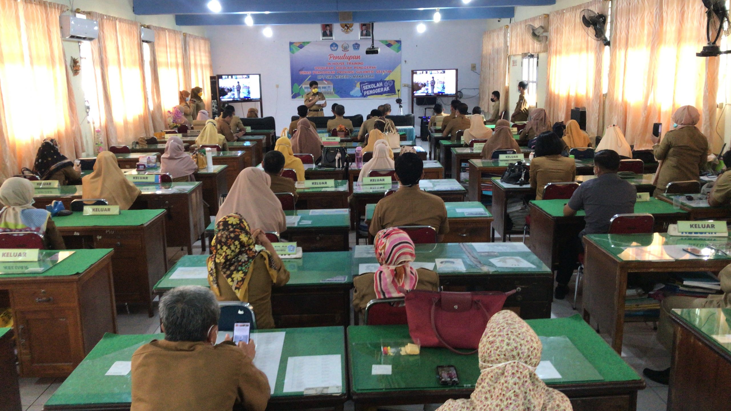 Kepala Dinas Pendidikan Provinsi Sulawesi Selatan, Prof. Dr. Muhammad Jufri, M.Si., M.Psi., Psikolog hadir dan sekaligus menutup In House Training Program Sekolah Penggerak Dinas Pendidikan Provinsi Sulawesi Selatan di Aula UPT SMAN 2 Makassar.