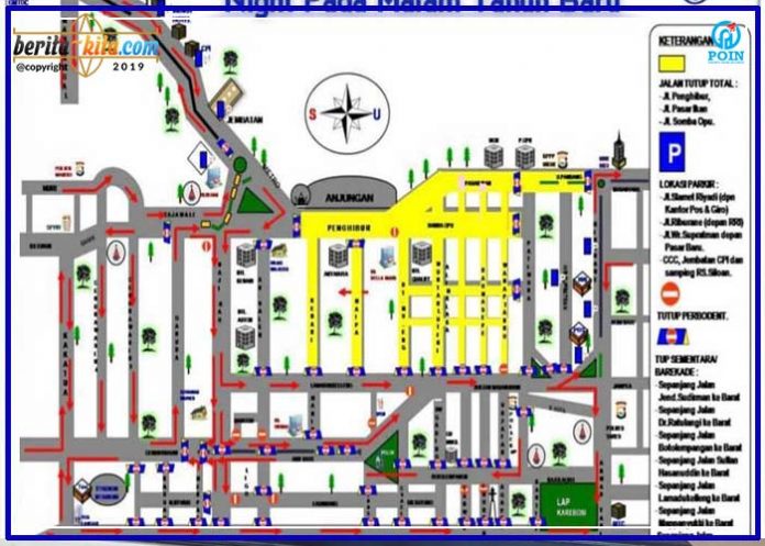 Makassar, Berita-Kita | Jelang malam pergantian Tahun Baru 2020, Satuan Lalu Lintas Polrestabes Makassar melakukan penutupan beberapa ruas jalur lalu lintas kendaraan di Kota Makassar Keputusan ini diambil mengingat banyaknya warga yang akan tumpah ruah memeriahkan malam pergantian Tahun Baru 2020.