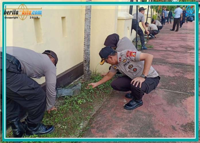 Sinjai, Berita-Kita | Pada hari Selasa tanggal 17 Maret 2020 pukul 07.30 wita, setelah pelaksanaan apel pagi personil Polres Sinjai melaksanakan kegiatan kerja bhakti dengan sasaran membersihkan lingkungan seputaran Mako dan asrama, hal ini dilaksanakan dalam rangka menindak lanjuti TR dari Bapak Kapolri tentang mengantisipasi dan mencegah penyebaran Covid-19 (corona),”.