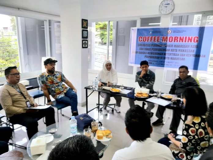 Makassar, Berita-Kita | Perumda parkir Makassar menjalin sinergitas dengan Dinas Perhubungan Kota Makassar. Hal ini guna mensinkronkan program yang ada di masing-masing SKPD, dalam rangka memasuki bulan suci ramadan 1445 H. Demi mewujudkan ketertiban dan kenyamanan Perparkiran,dalam Acara Coffee Morning, Jum’at (08/03/2024).