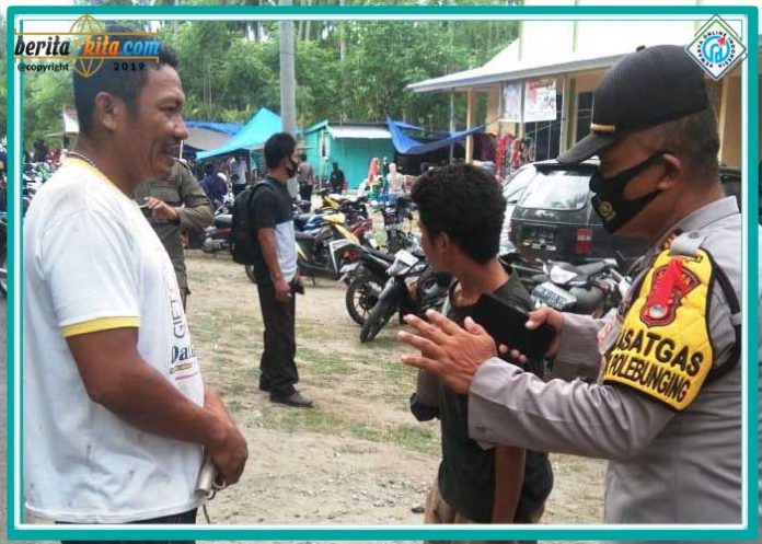 Selayar, Berita-Kita | Giat operasi yustisi penegakan disiplin protokol kesehatan (prokes) dilancarkan jajaran aparat kepolisian sektor Bontomanai, Kabupaten Kepulauan Selayar, Sulawesi-Selatan, pada sekitar pukul 08.15 wita, Rabu, (23/12/2020).