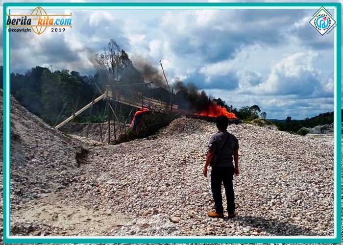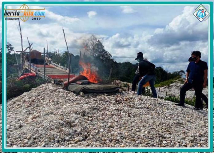“Selanjutnya dilakukan tindakan cara merusak dan membakar satu unit alat dompeng darat tersebut, “kata Henky.
