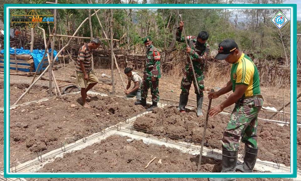 Pos Oelbinose, Berita-Kita | Satgas Pamtas RI-RDTL Sektor Barat Yonarmed 6/3 Kostrad rehab rumah warga yang tidak mampu di RT 10, RW 06, Dusun 3 Oeana, Desa Tasinifu, Kecamatan Mutis, Kabupaten Timor Tengah Utara, Provinsi NTT, Selasa (07/09/2021).