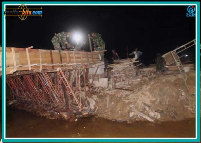 “Pengerjaan yang kami kebut hingga malam hari Ini dilakukan agar proses pembuatan jembatan bisa terselesaikan sesuai target.”