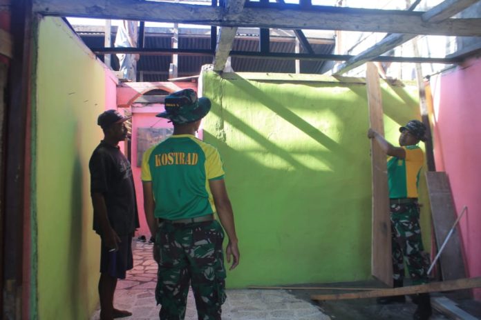 Maluku, Berita-Kita | Komunikasi Sosial (Komsos) terus dilakukan Satgas Operasi Satuan Organik Yonarmed 1 Kostrad dalam menjaga hubungan silaturahmi dengan masyarakat. Tak hanya itu, seperti yang dilakukan anggota Pos Ramil Lisabata melaksanakan karya bakti untuk merenovasi Rumah Ramli Aihunan, salah seorang tokoh pemuda di Desa Lisabata Timur, Kec. Seram Utara Barat, Kab. Maluku Tengah, Prov. Maluku, Kamis (08/09/2022).