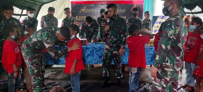 Apa yang disampaikan oleh ketua Yayasan Panti Asuhan dan Tokoh Agama tersebut berkenaan dengan kegiatan yang digelar oleh Satgas Yonif 711/Rks yaitu syukuran dan berbagi kasih bersama anak yatim di perbatasan Skouw, Kel. Skouw Sae, Distrik Muara Tami, Kota Jayapura, Selasa (01/02/2022).