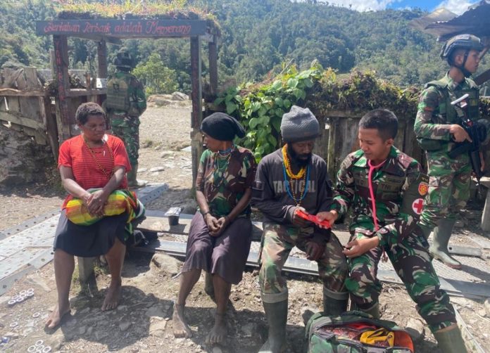 Nduga, Berita-Kita | Peduli Kesehatan Masyarakat Satgas satuan organik Yonif Raider 321/GT dengan sigap memberikan pengobatan dan pelayanan kesehatan kepada masyarakat Distrik Dal Kabupaten Nduga, Provinsi Papua, Sabtu (09/07/2022)
