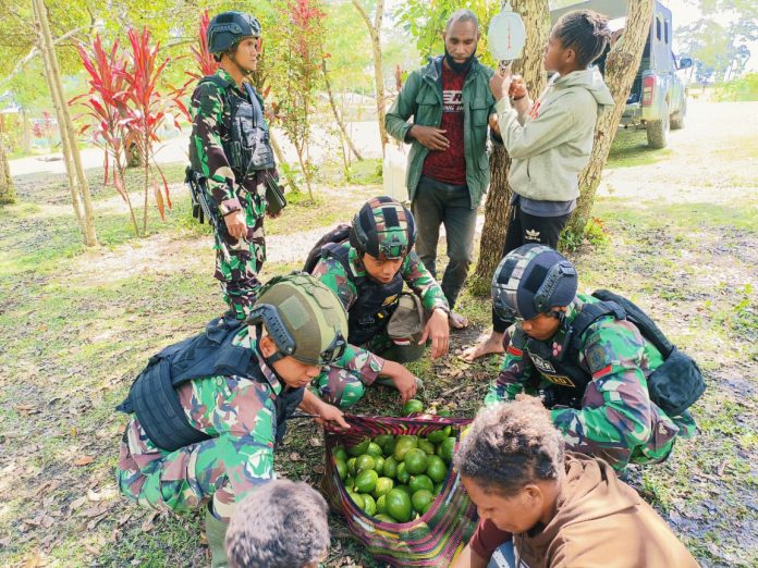 Jayawijaya, Berita-Kita | Tidak ada yang menyangka, salah satu daerah di Kabupaten Jayawijaya Distrik Asotipo, merupakan produsen alpukat yang cukup populer. Daerah ini mampu menghasilkan alpukat dengan rasa yang sangat manis, namun masyarakat Asotipo mengeluhkan hasil panen alpukat sering tidak laku terjual di pasar, kali ini Satgas Yonif Raider 321/GT/13/1 Kostrad memberikan solusi memborong habis hasil bumi alpukat milik masyarakat Distrik Asotipo, Kabupaten Jayawijaya, Papua.