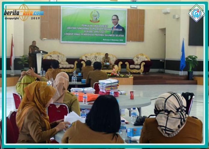 Makassar, Berita-Kita | Sekretaris Dinas Pendidikan Provinsi Sulawesi Selatan, H Hery Sumiharto, SE.M.Ed membuka kegiatan Penilaian Angka Kredit Jabatan Fungsional Guru dan Pengawas Sekolah untuk jenjang SMA, SMK dan SLB serta pengawas sekolah yang dilaksanakan di Gedung Guru Disdik Sulsel, Jl Perintis Kemerdekaan Km. 10 Tamalanrea Makassar, Senin (09/11/2020).