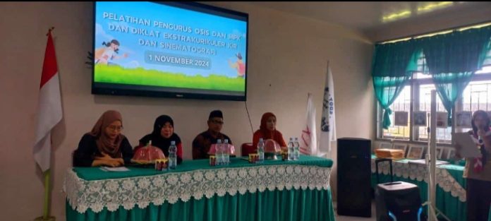 Pelatihan OSIS/MPK di koordinir Wakasek Kesiswaan, Mulianandar, S.Pd., M.Pd. dan Koordinator Ekstrakurikuler Sriwahyuni Bahri, S.Pd., M.Pd.