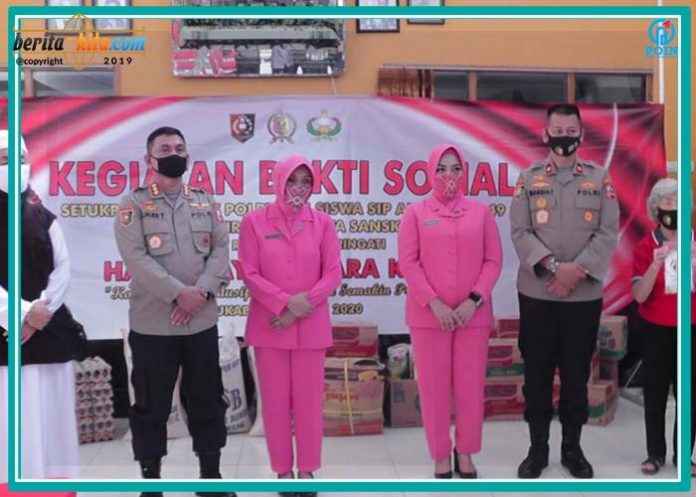 Bakti Sosial dilaksanakan oleh Kasetukpa Lemdiklat Polri Brigjen Pol Mardiaz Kusin Dwihananto, SIK, MHum beserta para pejabat utama Setukpa, Bhayangkari dan perwakilan peserta didik SIP angkatan ke-49 TA. 2020 Wira Adhibrata Sanskara.