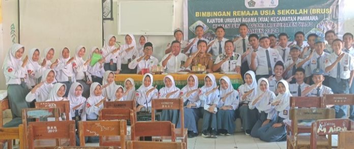 Bimbingan remaja usia sekolah (BRUS) dipimpin Kepala Kantor Urusan Agama (KUA) Kecamatan Pammana Muhammad Asgar, SHi bersama staf.