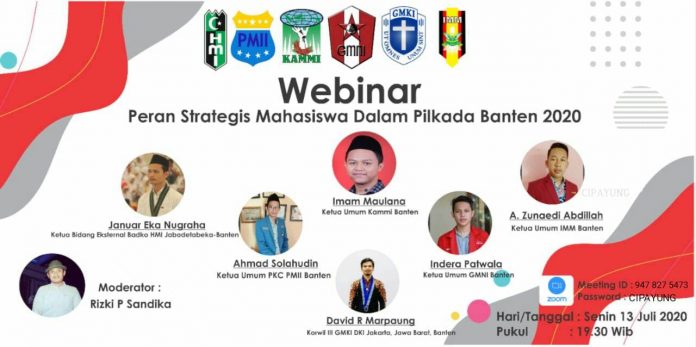 Cilegon, Berita-Kita | Cipayung plus Provinsi Banten menggelar WEBINAR (Diskusi Online) yang bertajuk “Peran Strategis Mahasiswa Dalam Pilkada Banten 2020” Melalui Aplikasi ZOOM MEETING.